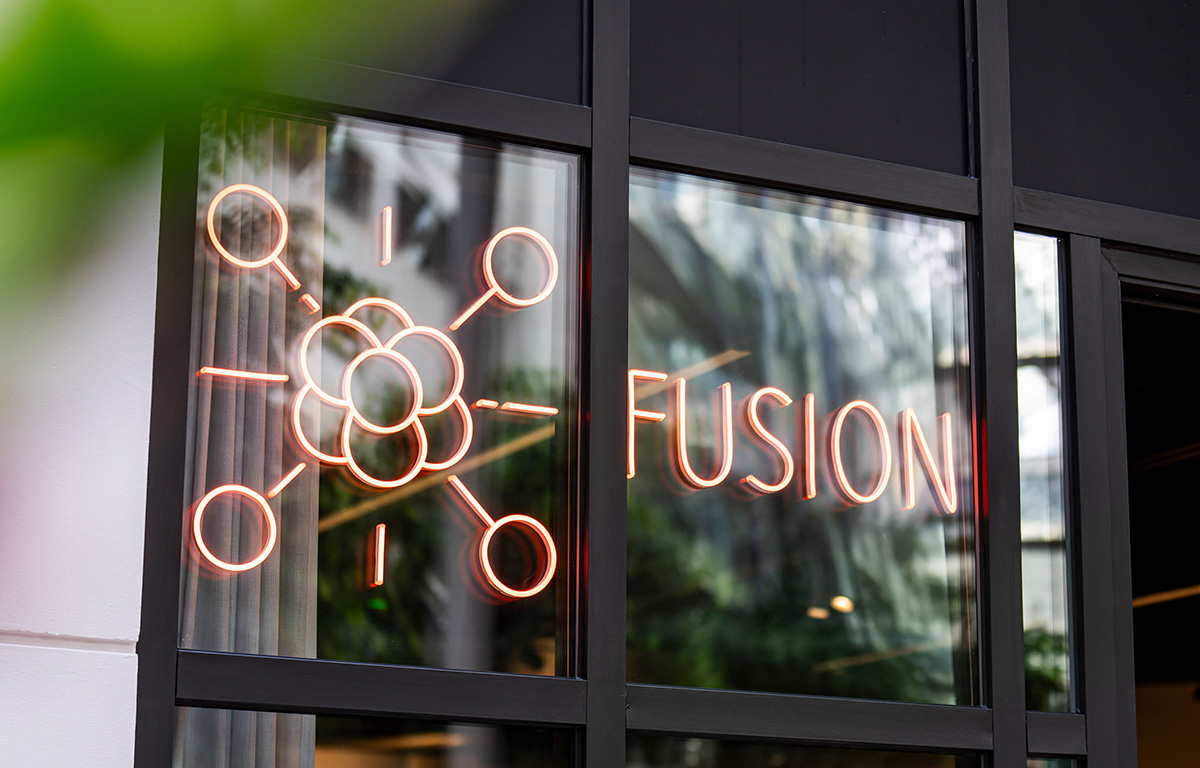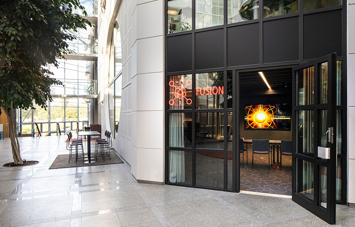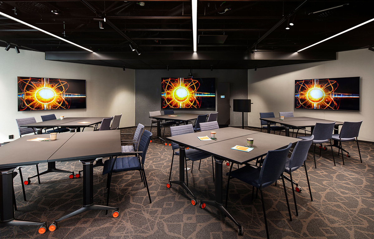 För de riktigt visionära har vi rummet som är döpt efter framtidens hetaste energislag. Det är ett väldigt flexibelt rum med flera olika möbleringsalternativ och tre stora skärmar som kan visa olika innehåll samtidigt.