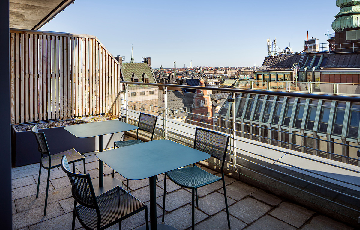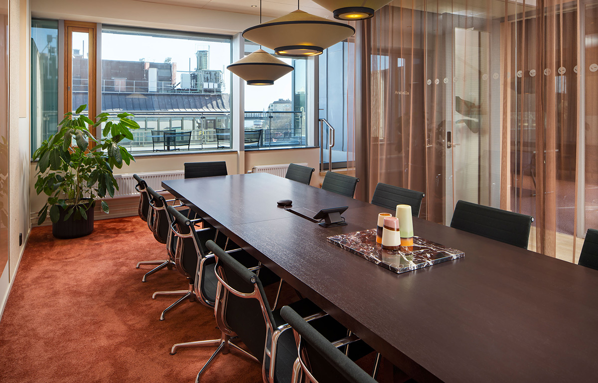 Arabella är vårt absoluta favoritrum på Helio Slussen om du är ute efter något som sätter avtryck. Här sitter ni med utsikt över Stockholms inlopp och utgång till en egen takterrass om du vill ha ordentlig panorama över Af Chapman, Gröna Lund, Slussen och vattnet. När du har tittat dig mätt på utsikten, kommer du märka att det finns plats för upp till 12 personer att mötas, eller ännu flera om du ansluter till hybridmöteslösningen från BOSE.